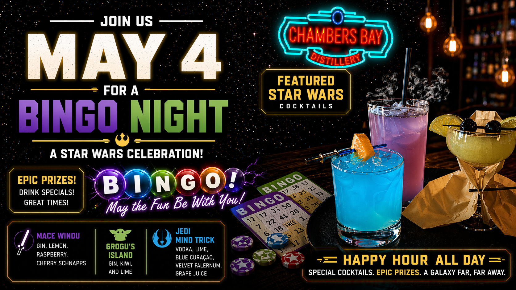 Join us for our inaugural BINGO night and enjoy some Star Wars inspired cocktails.